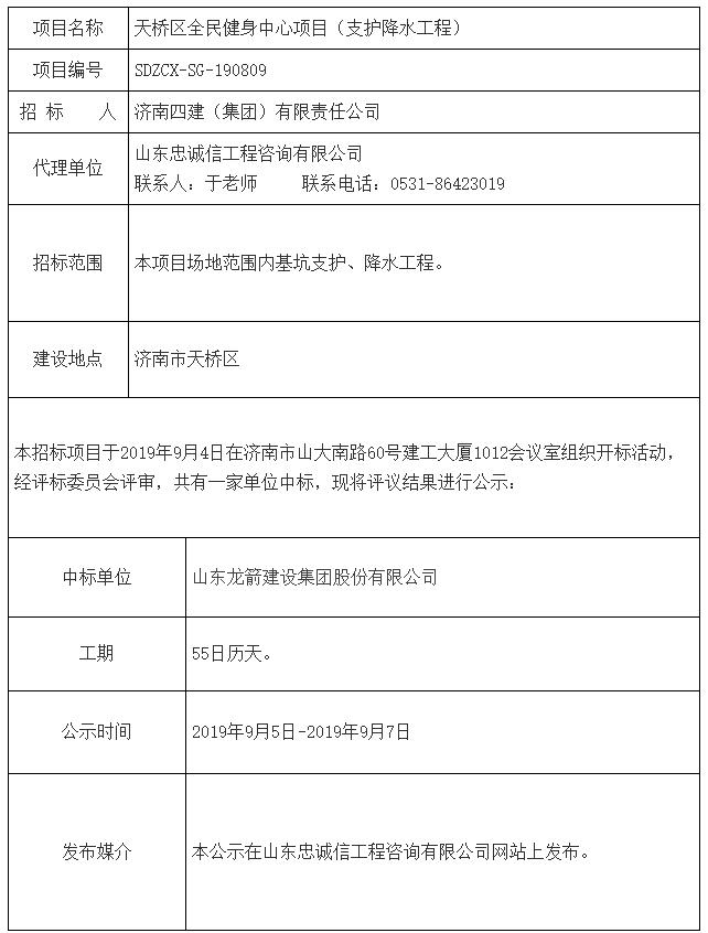 天橋區全民健身中心項目(支護降水工程)中標公示